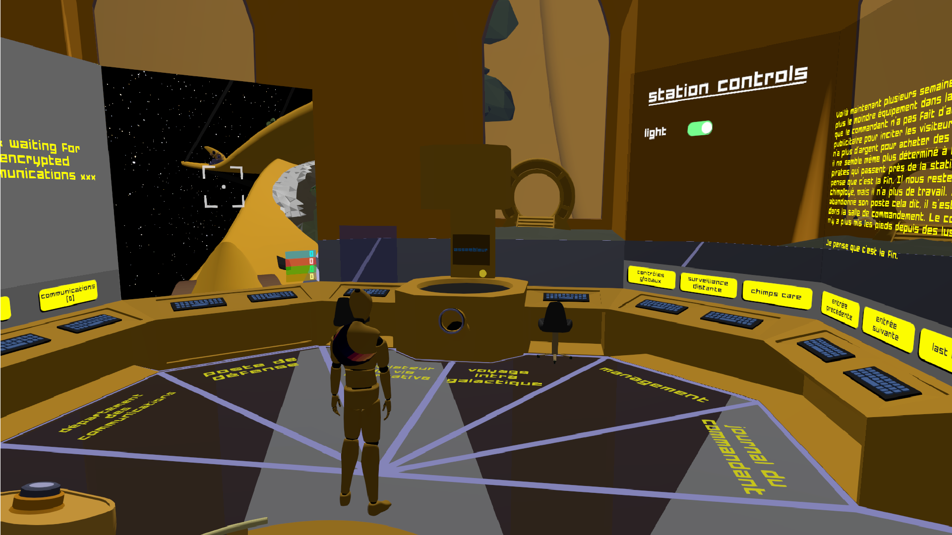 Pour chaque énigme résolue, j'ai ajouté un instrument à cette base afin d'indiquer au joueur.se qu'iel progresse dans le jeu.